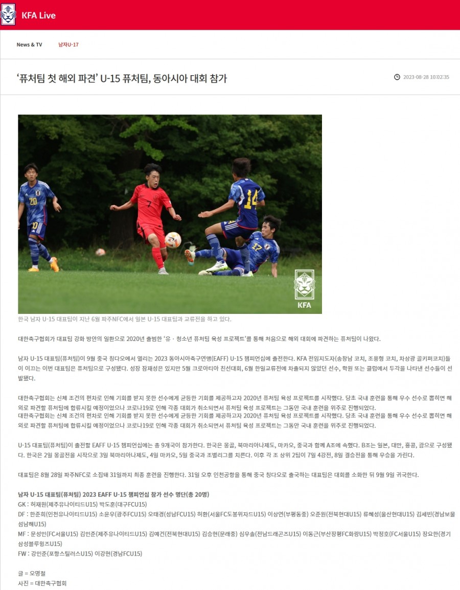 (주)다온글로벌 후원 장학생인 경남FC U15 군북중 소속 이강현 선수가 대한민국 U15대표팀에 발탁되었습니다.